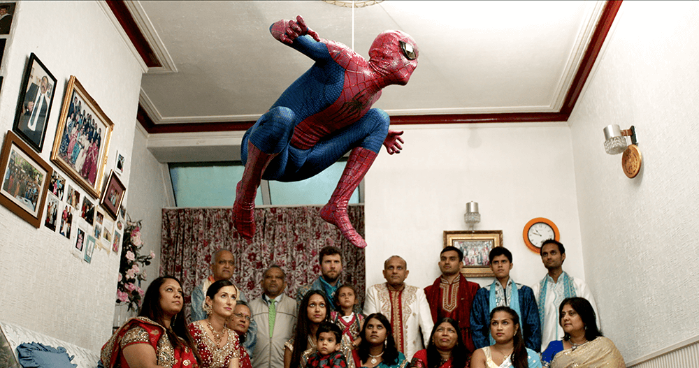 Experienced as a 2-sided video installation, The Jump presents Patel leaping off the sofa in his grandmother’s living room as his extended family looks on. His family are wearing formal Indian clothes, whilst he wears a homemade replica Spider-Man costume. According to Patel, this was the first sofa he had ever jumped off as a child whilst pretending to be the superhero. The Jump reflects on our collective desire for shared experiences and role models, but also his family’s great leap, in reference to their migration to the UK.