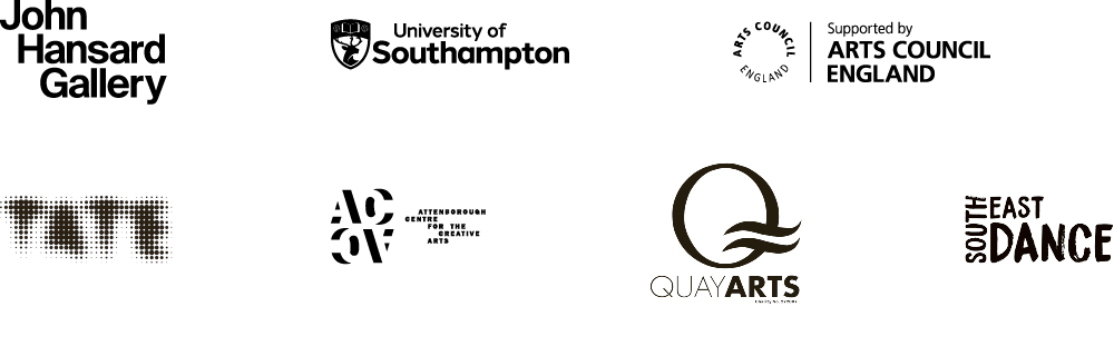 Soundings is supported by John Hansard Gallery, Tate St Ives and Attenborough Centre for the Creative Arts with public funding from the National Lottery through Arts Council England. It is presented in cooperation with John Hansard Gallery, Attenborough Centre for the Creative Arts, Tate St Ives and Quay Arts. Soundings was also kindly supported by South East Dance.