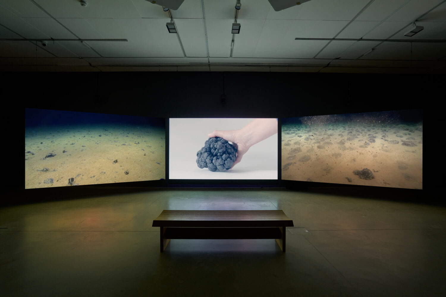 At the heart of the exhibition is a striking multi-screen film installation that immerses viewers in the tensions and possibilities surrounding deep-sea mining. Through film, sound, and dance, Critchley invites audiences to connect with the seemingly inaccessible deep ocean from an intensely embodied perspective.