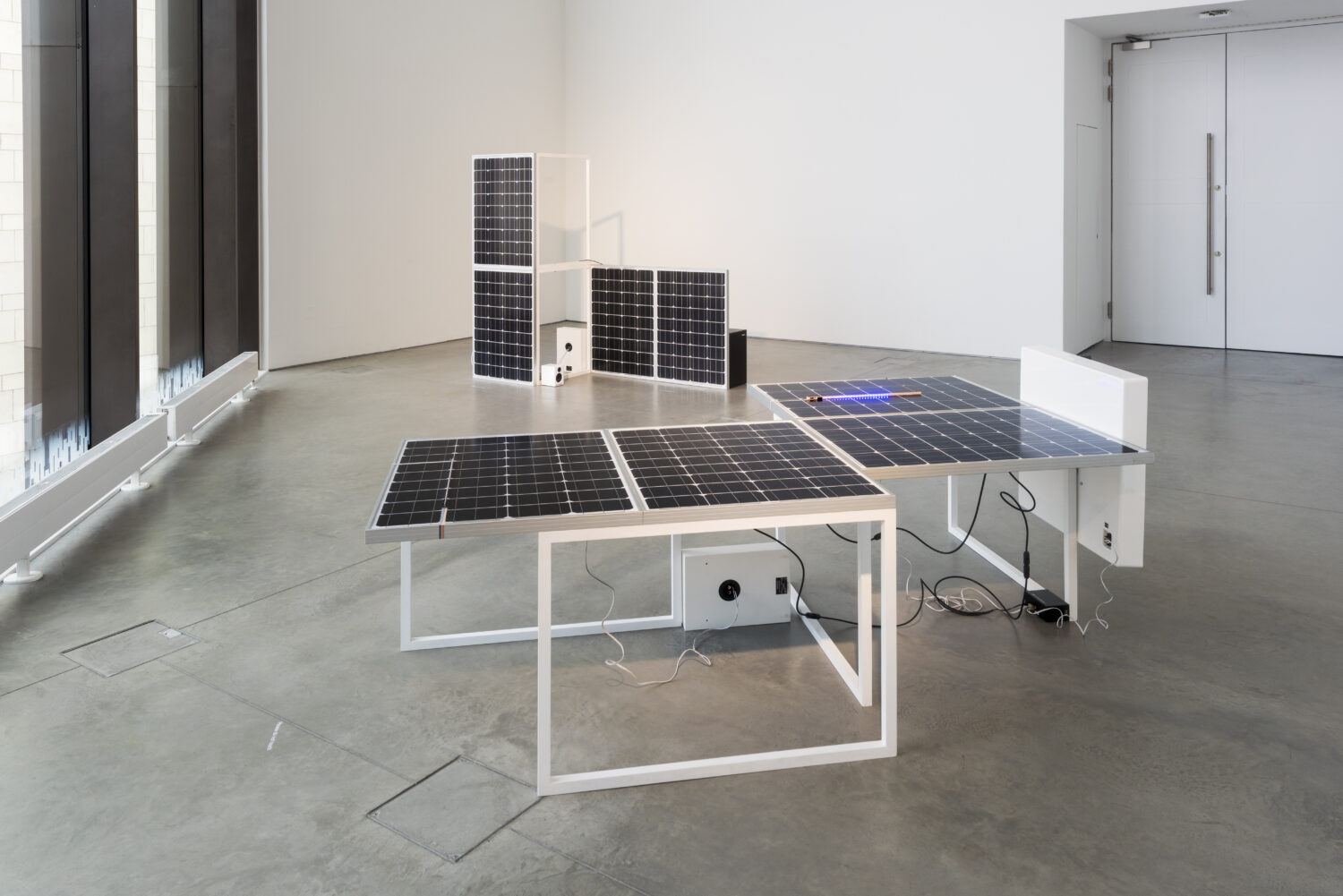 Mirza’s artworks are united by an enduring preoccupation and engagement with diverse disciplines, including physics, shamanism, artificial intelligence and astrology. As an advocate of interference, Mirza creates situations that purposefully cross wires. He devises sculptures, performances and immersive experiences that skilfully blend ancient and contemporary technologies, offering up composite installations that mix an eclectic range of materials.