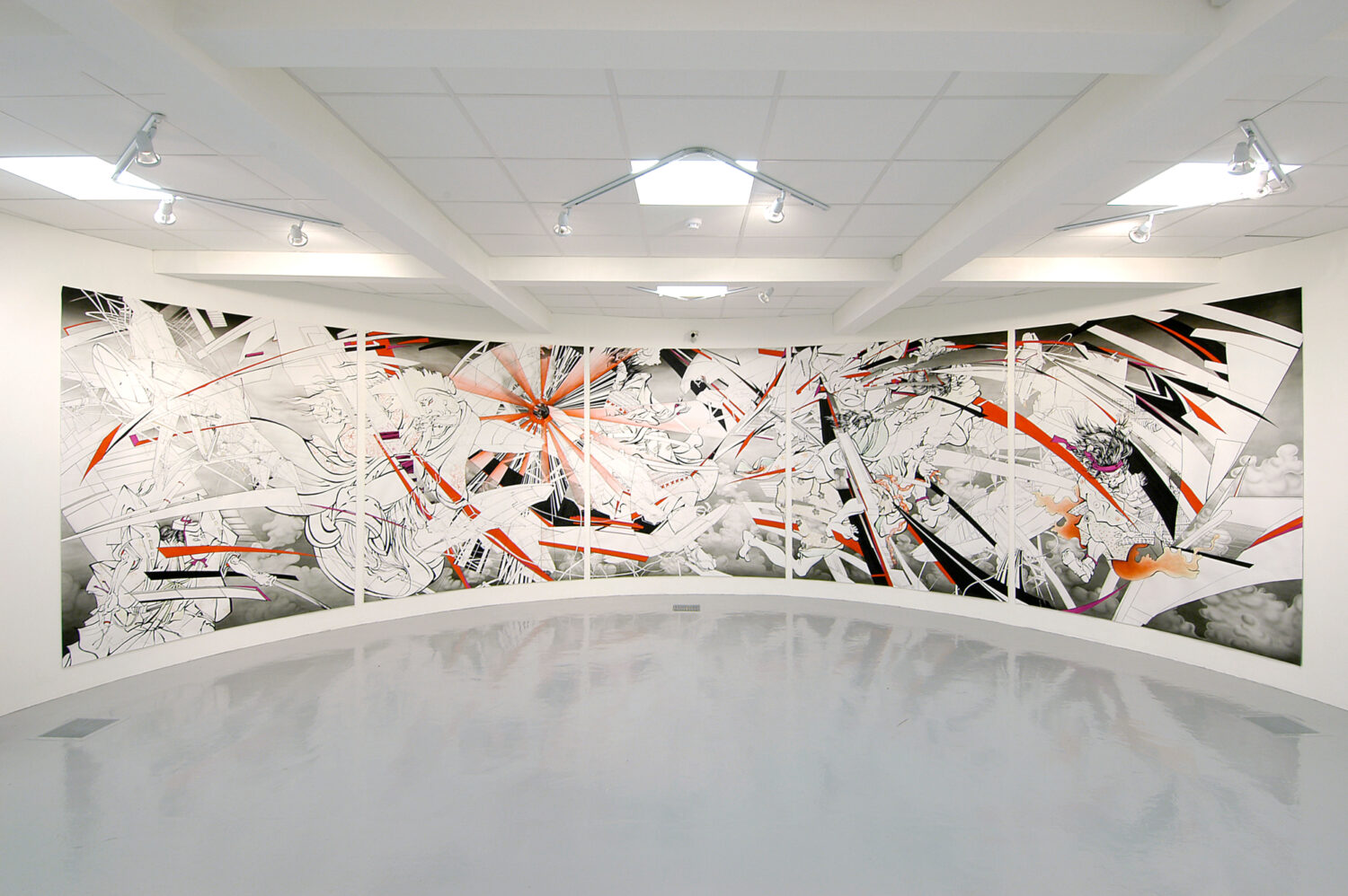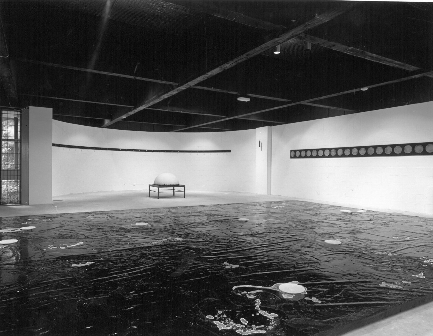 An architectural feature that was retained throughout the entire life of the building was the curved wall – one of the Gallery’s most famous features. Often the first space a visitor would encounter, it was a key area that set them on their journey around an exhibition. Artists and curators relished the opportunity to use that space to its best, either utilising the actual curve itself, or using the unique space that it created.