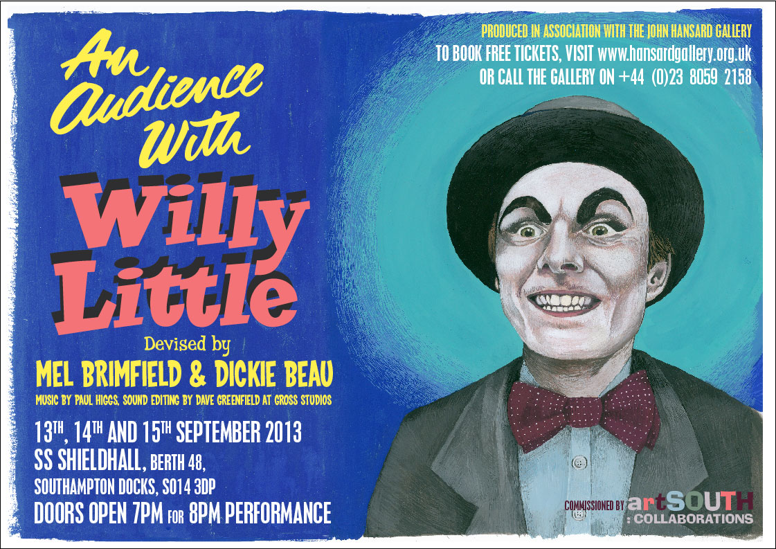 Further programming evolved throughout the 2000s, including major solo exhibitions by Gina Pane, 2001 and Joan Jonas, 2004. One seminal exhibition and publication on the subject of performance, or more specifically, the relationship between an artist and their documenter, was Live Art on Camera in 2007 (curated by Alice Maude-Roxby). In 2013, Performance/Audience/Film focused on the direct relationship between performance and its audience. Later that year, JHG worked with Mel Brimfield on the exhibition Death and Dumb and the performance An Audience with Willy Little, performed by Dickie Beau; an ambitious production first held aboard the SS Shieldhall at Southampton docks.