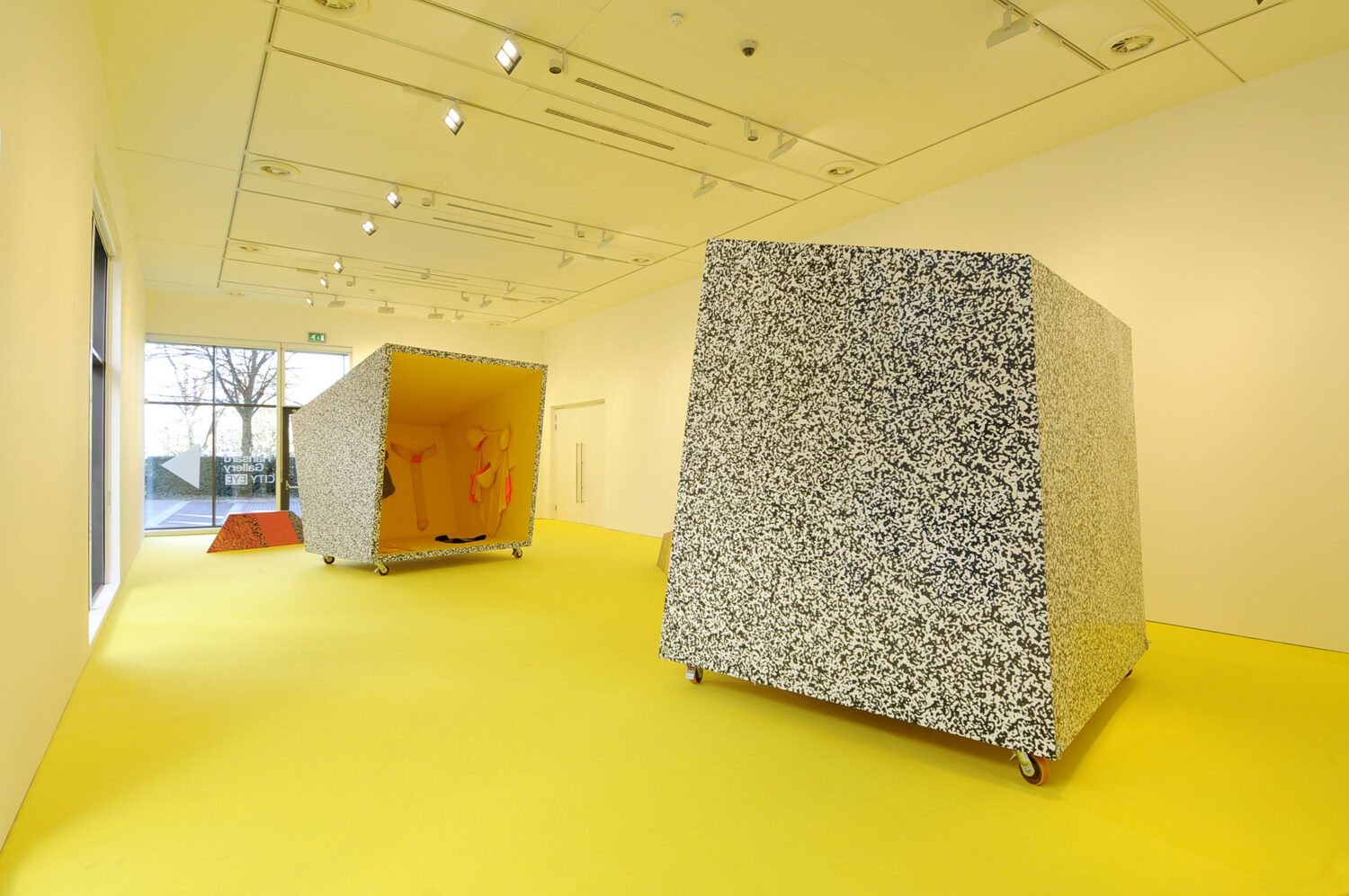 Rhona Byrne’s Huddlehood that featured in ‘Summer in the Square’ last August, will also be on view inside the new Gallery. Huddlehood is a geometric container that houses yellow social clothing, hoodies and baseball caps for groups of two or more people. It was originally created for the Facebook HQ in Dublin.