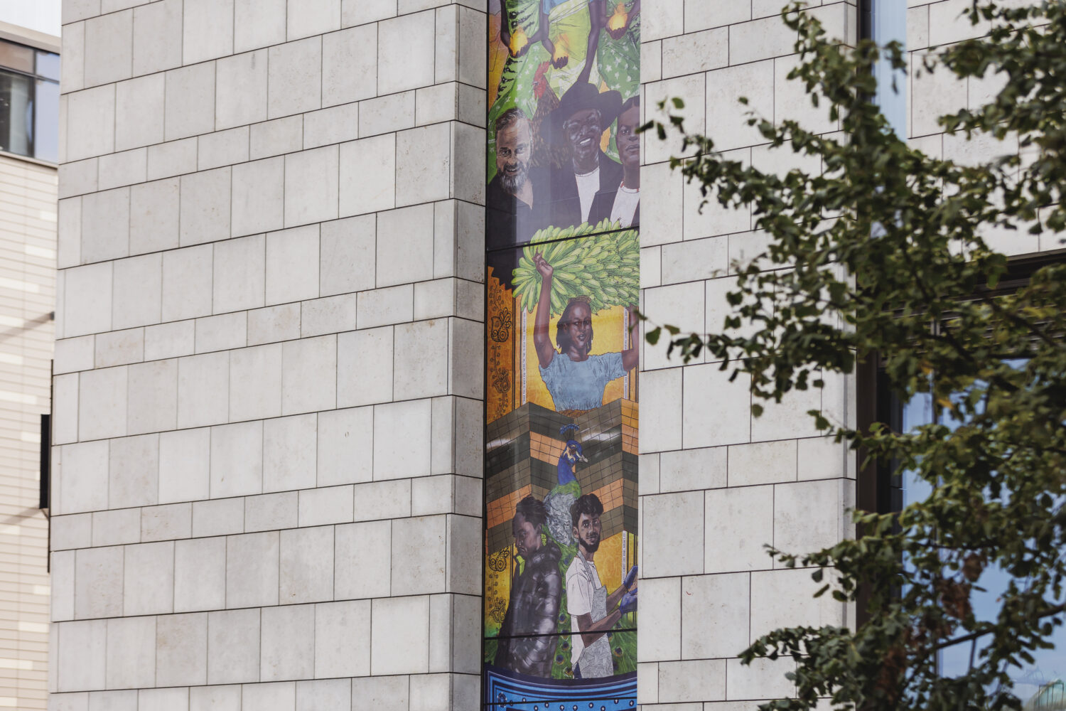 To create his design, Edgar used a combination of detailed observational drawings and conversations to depict Southampton residents, and included alongside them a Tanzanian proverb ‘Nifae kwa mvua Nikufae kwa jua kwani kidole kimoja hakivunji chawa’, which means ‘be (there) for me in the rain; I’ll be (there) for you in the sun because one finger cannot kill a louse.‘