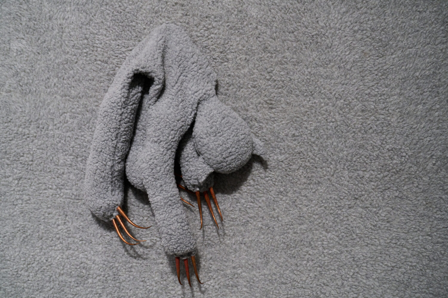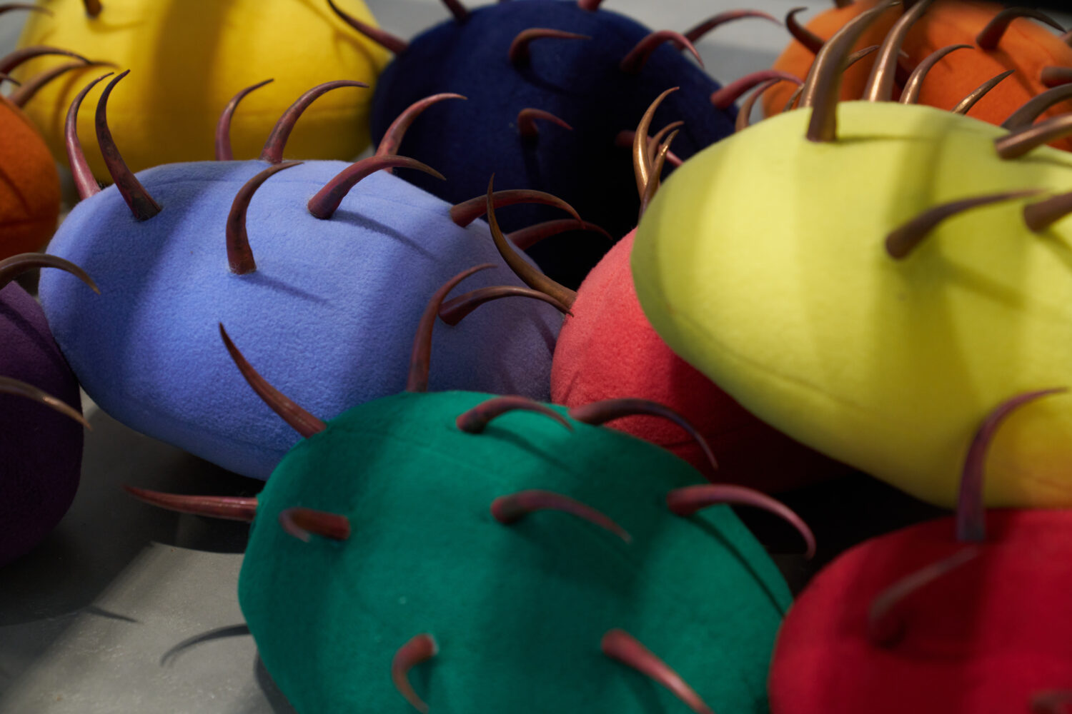 Nothing is Fixed focuses on the intersectionality of identity; how society, family and education inform unique combinations of discrimination and privilege. Reflected in Kaur’s use of materials, (whilst also building on the influence of Pop Art or contemporary traditions where material challenges the form, e.g., Claus Oldenburg, Eva Hesse, etc) Kaur adds a narrative affected by heritage, while her early interest in artists such as Mike Kelley informs her use of soft materials – with menacing undertones.